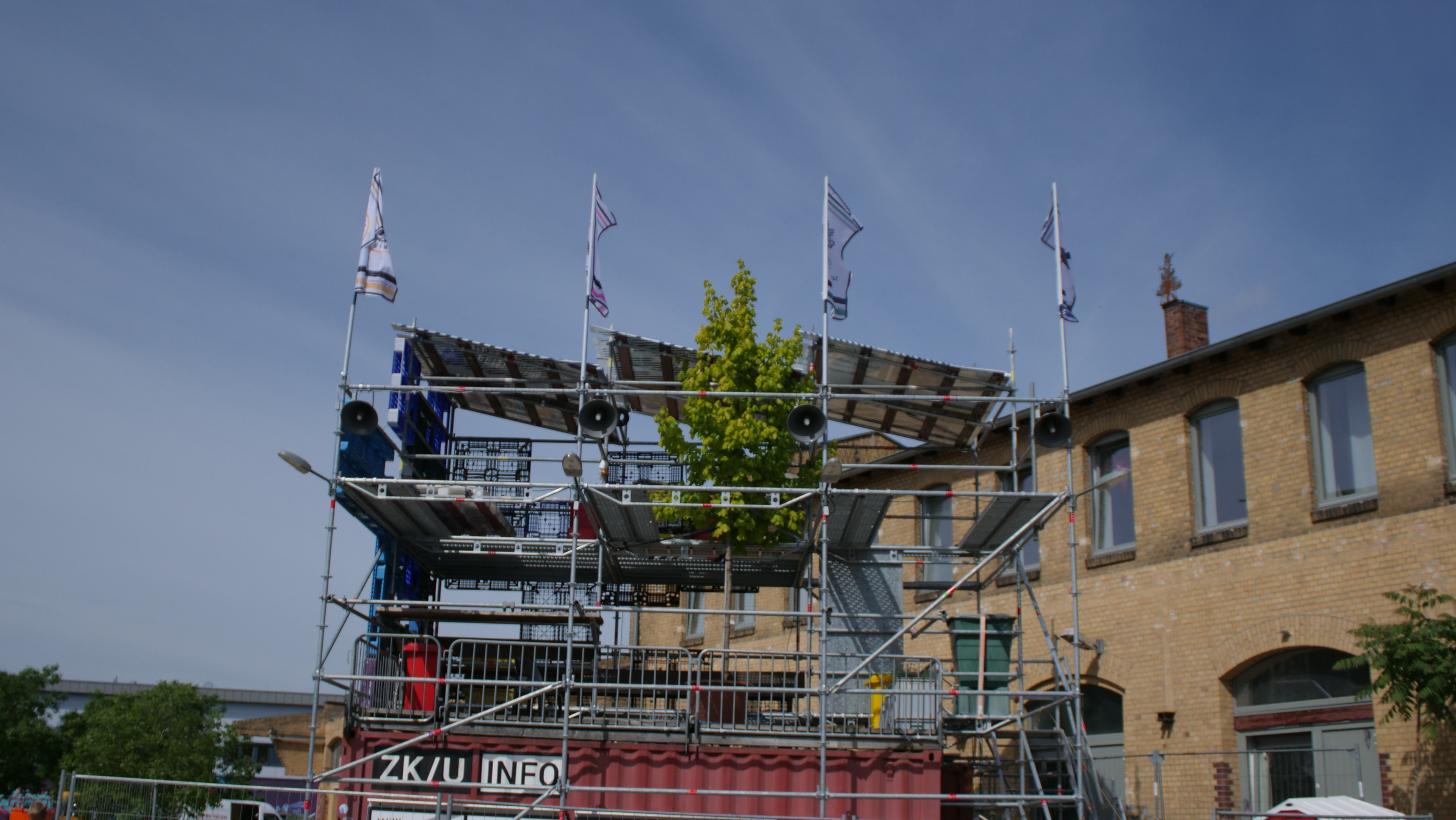 To open the process of transformation to future users and invite opportunities for discussion, the ZK/U is installing a scaled-down version of the roof terrace on the yard in front of the building - the 'Construction Explained'.